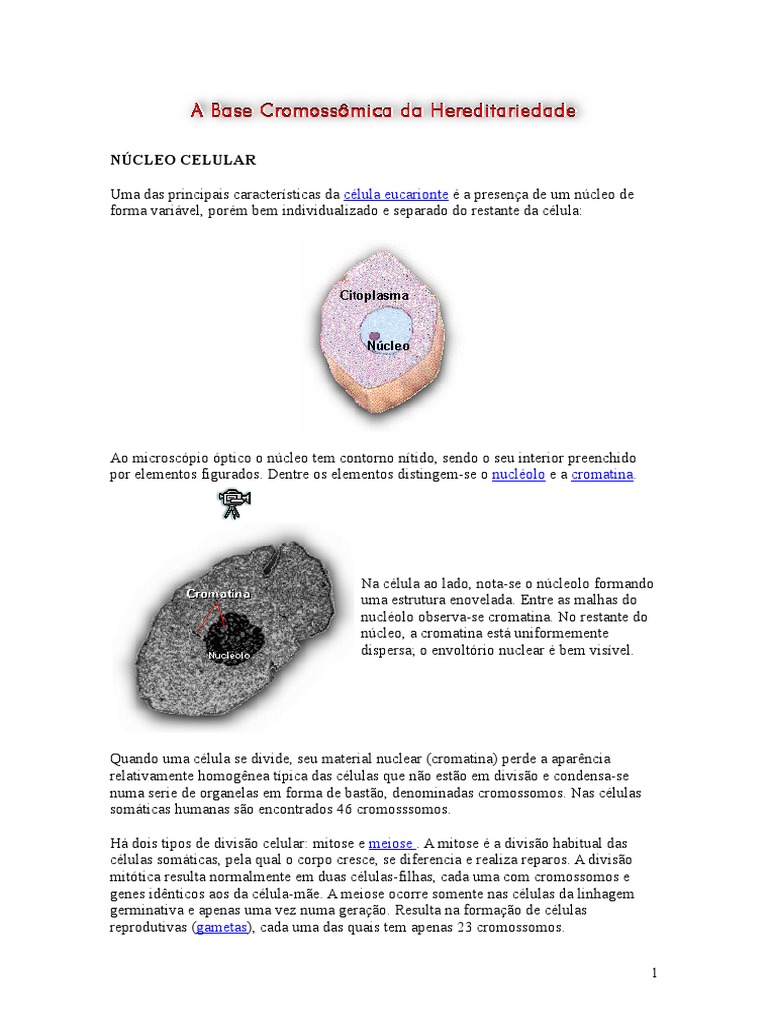 cada em cada célula diplóide. Portanto, nos núcleos existem pares de cromossomos