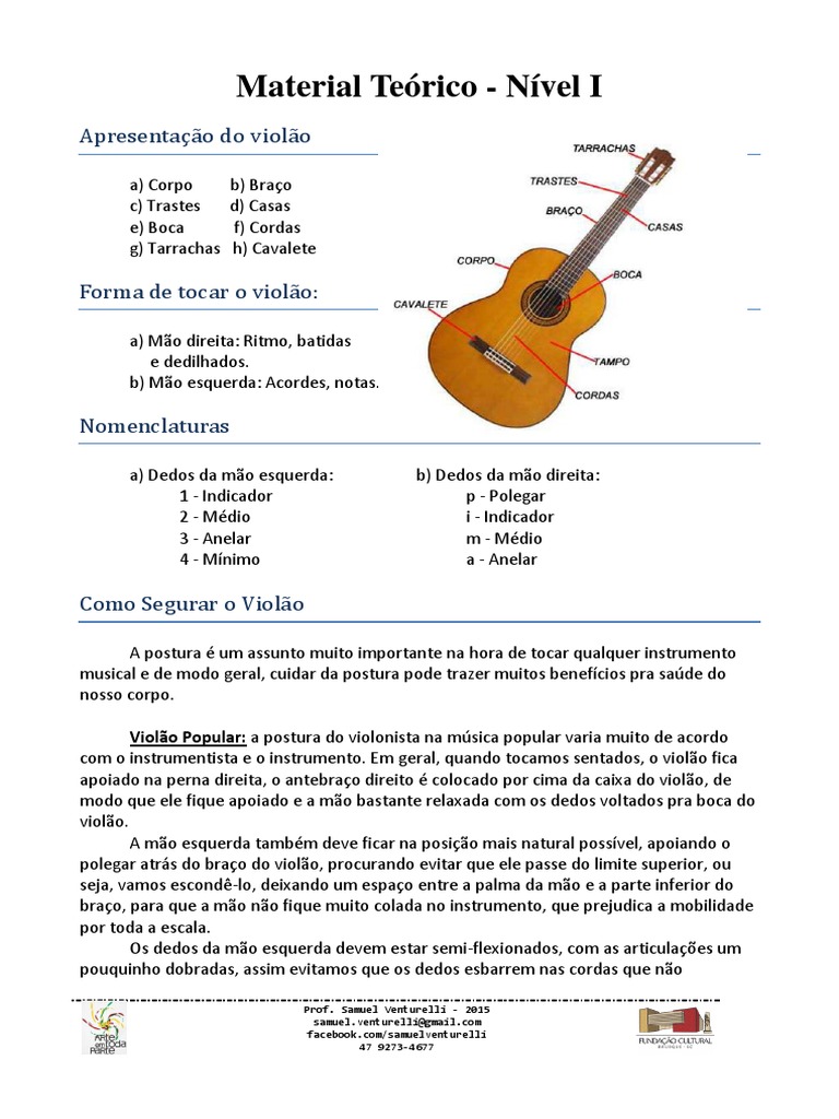 com o instrumentista e o instrumento. Em geral, quando tocamos sentados, o violão fica