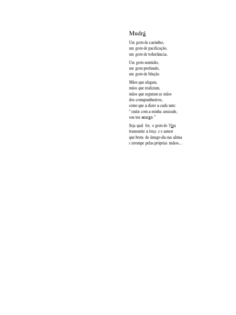 Mudrá é a linguagem gestual. Deve ser pronunciado sempre com a
