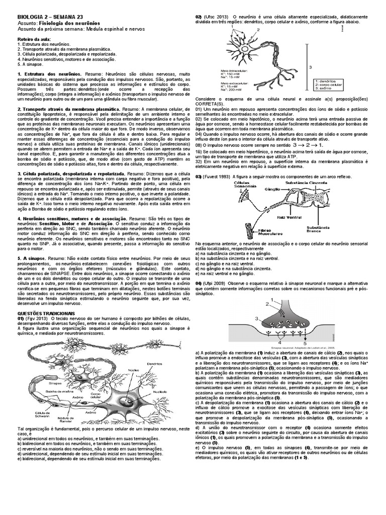 5. A sinapse. Resumo: Não existe contato físico entre neurônios. Por meio de seus b) na substância cinzenta e na raiz ventral.