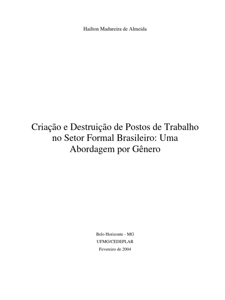 Belo Horizonte - MG UFMG/CEDEPLAR Fevereiro de 2004