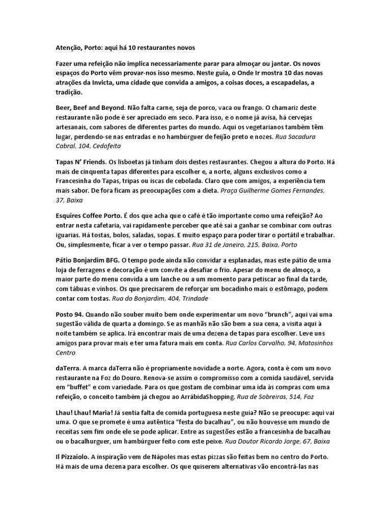 espaços do Porto vêm provar-nos isso mesmo. Neste guia, o Onde Ir mostra 10 das novas