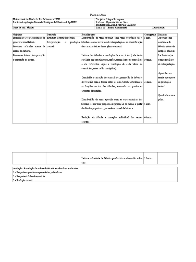 e produção de textos. será lido em voz alta para, então, serem feitos os exercícios 50 min. com exercícios