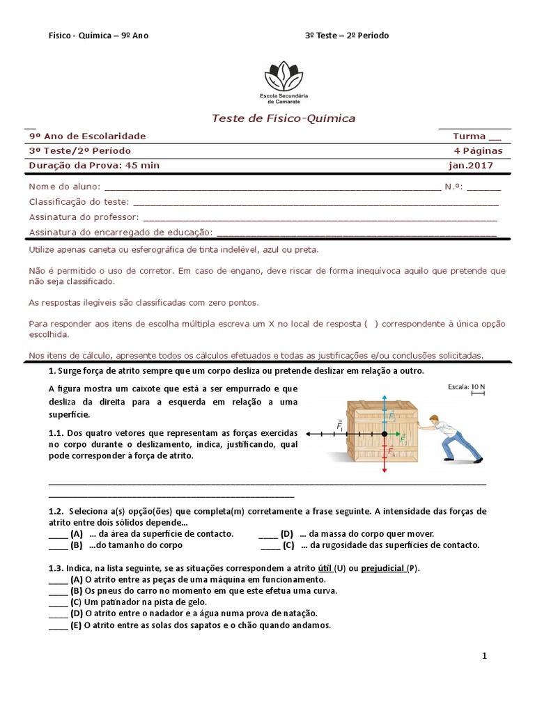 Físico - Química – 9º Ano 3º Teste – 2º Período