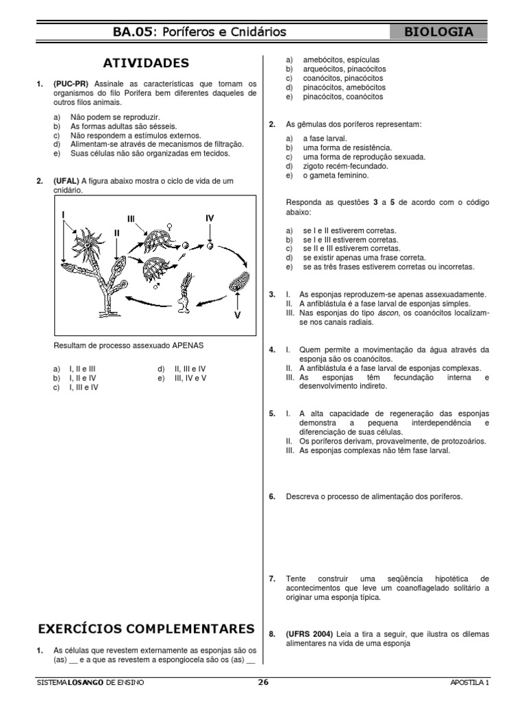 está presente na esponja, é e) se as três frases estiverem corretas ou incorretas.