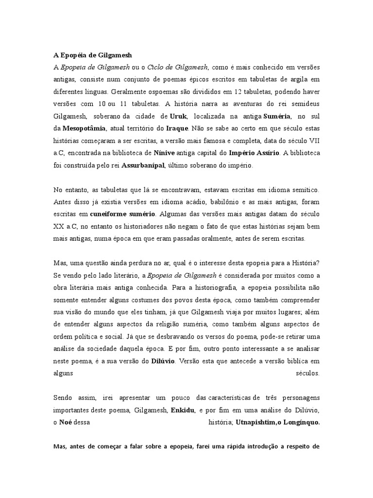 Se vendo pelo lado literário, a Epopeia de Gilgamesh é considerada por muitos como a
