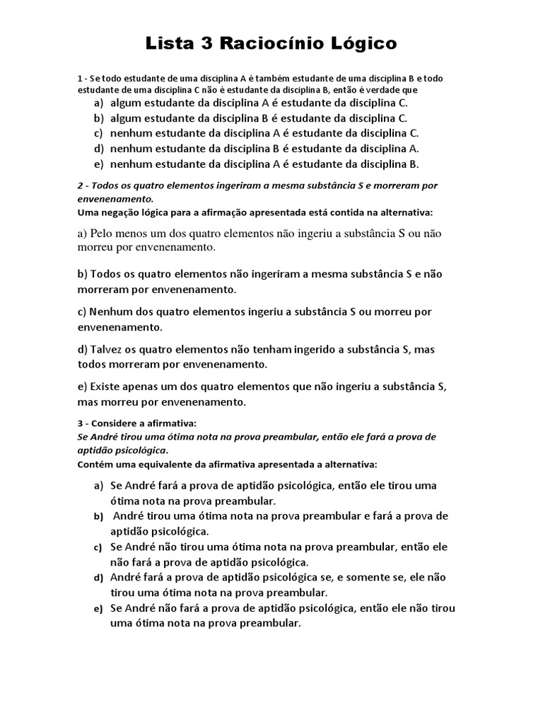 Lista 3 Raciocínio Lógico