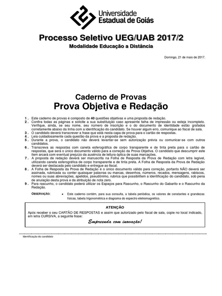 Provas UEG/UAB 2017: Instruções e Questões