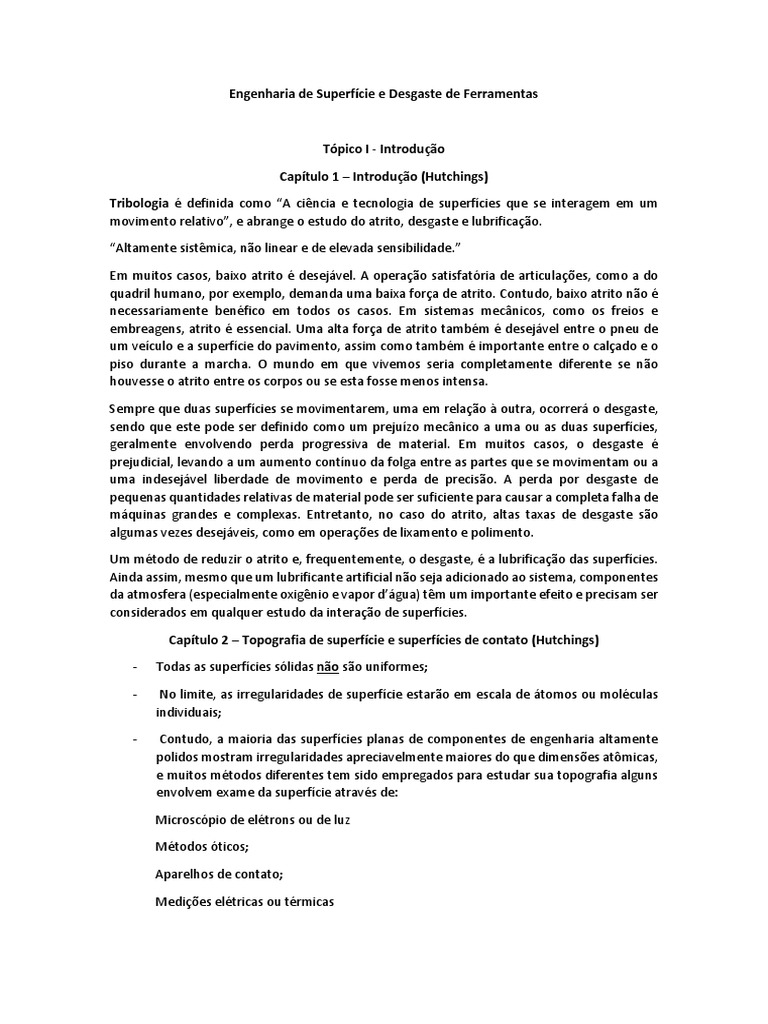 Engenharia de Superfície e Desgaste Resumo