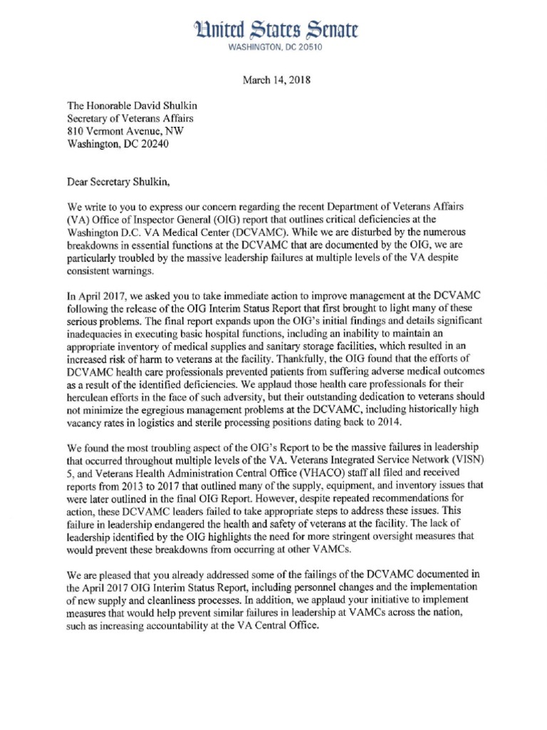 Letter to Sec. Shulkin re DCVAMC