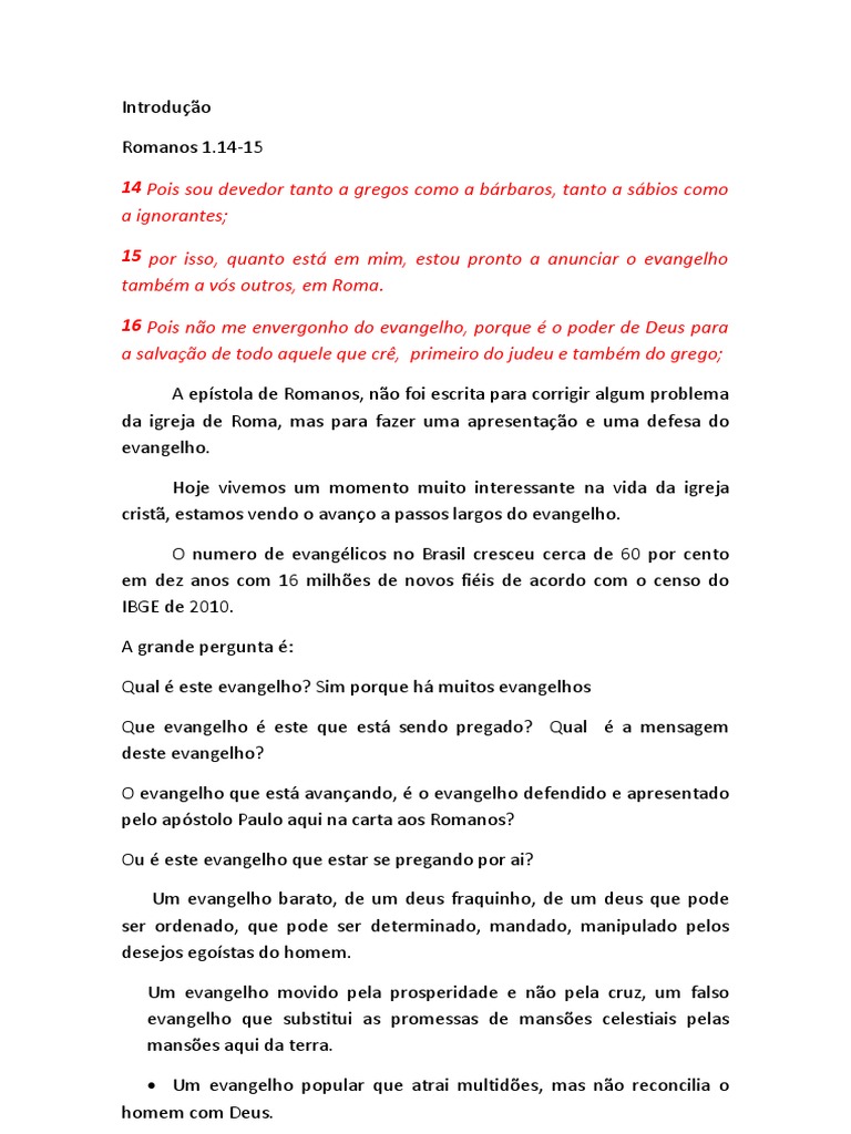 O apostólo Paulo está dizendo aqui em Rm:1.1, o meu evangelho, o