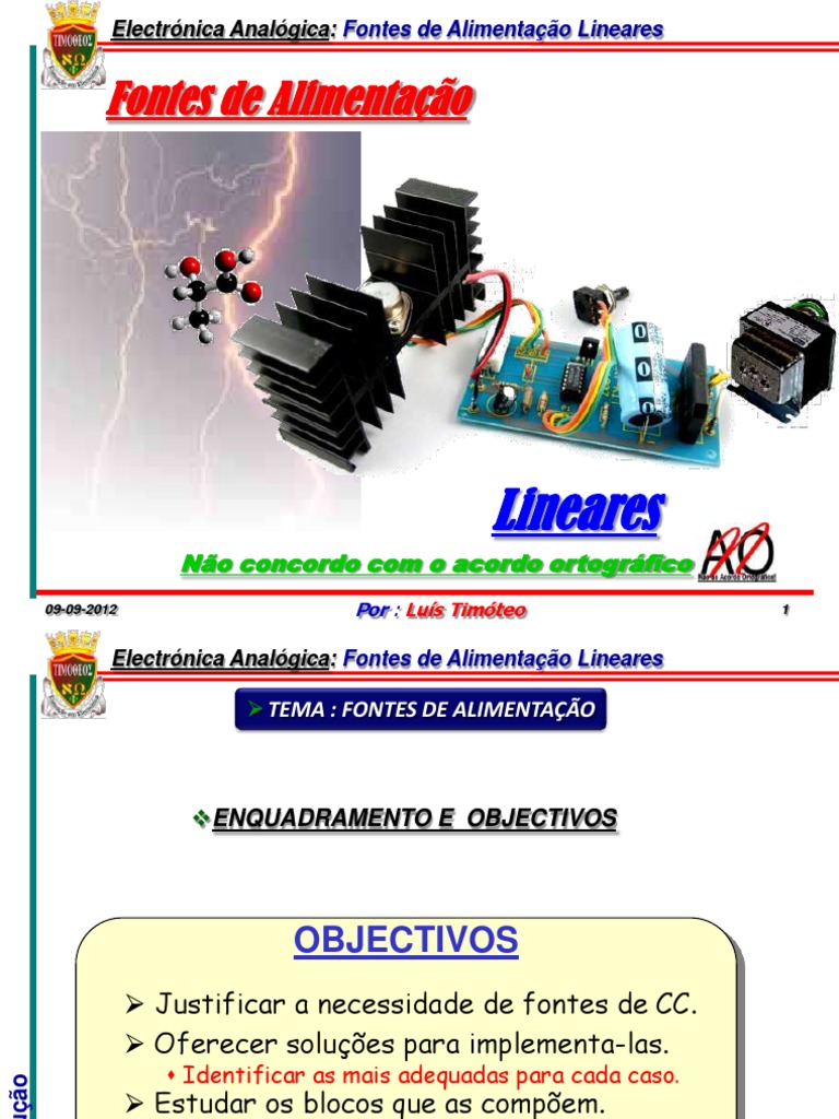 Electrónica Analógica: Fontes de Alimentação Lineares