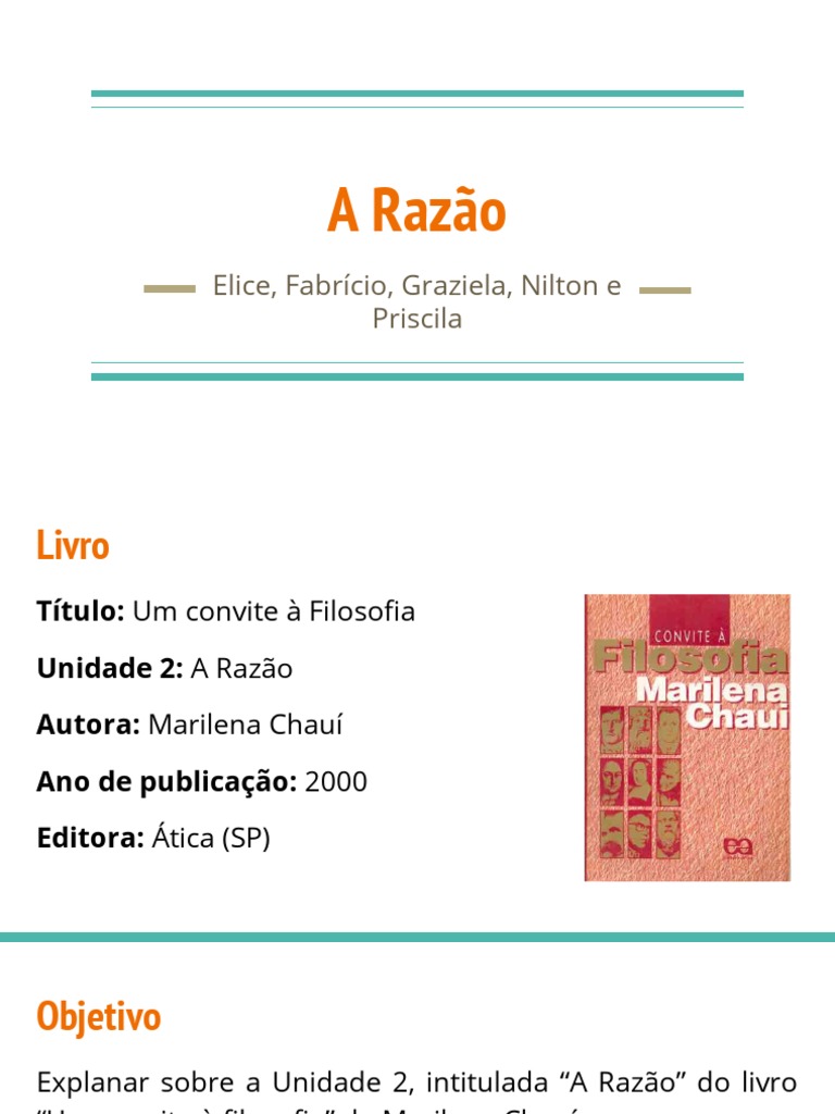 Explanar sobre a Unidade 2, intitulada “A Razão” do livro