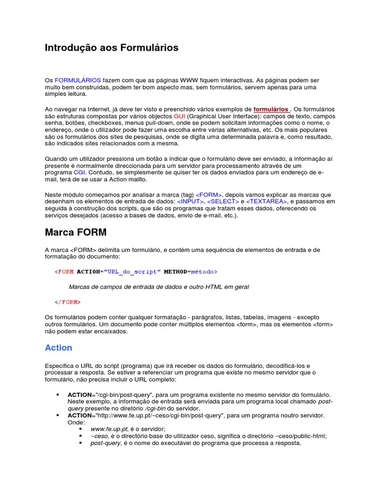 Neste módulo começamos por analisar a marca (tag) <FORM>, depois vamos explicar as marcas que