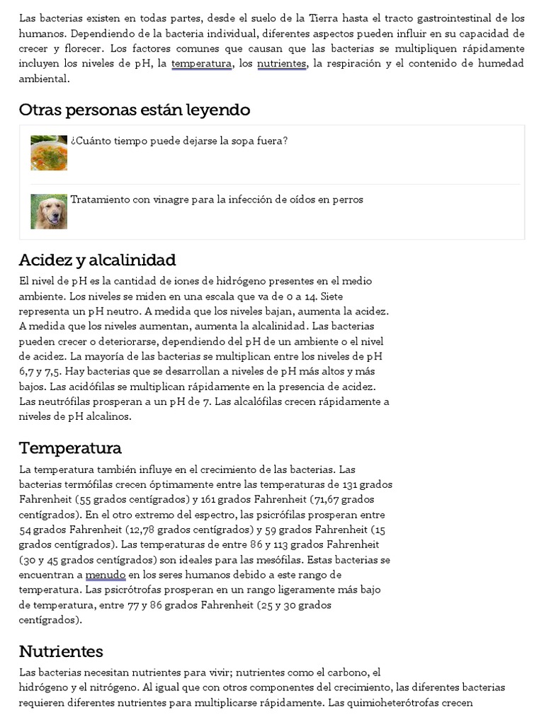 crecer y florecer. Los factores comunes que causan que las bacterias se multipliquen rápidamente