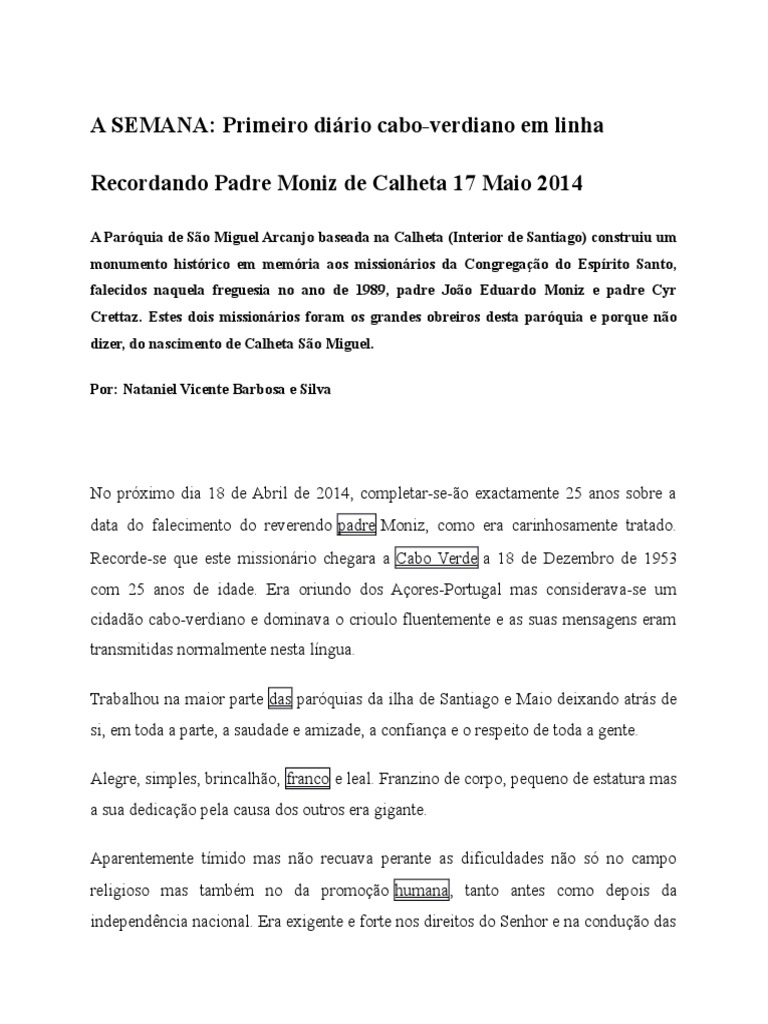 Recorde-se que este missionário chegara a Cabo Verde a 18 de Dezembro de 1953