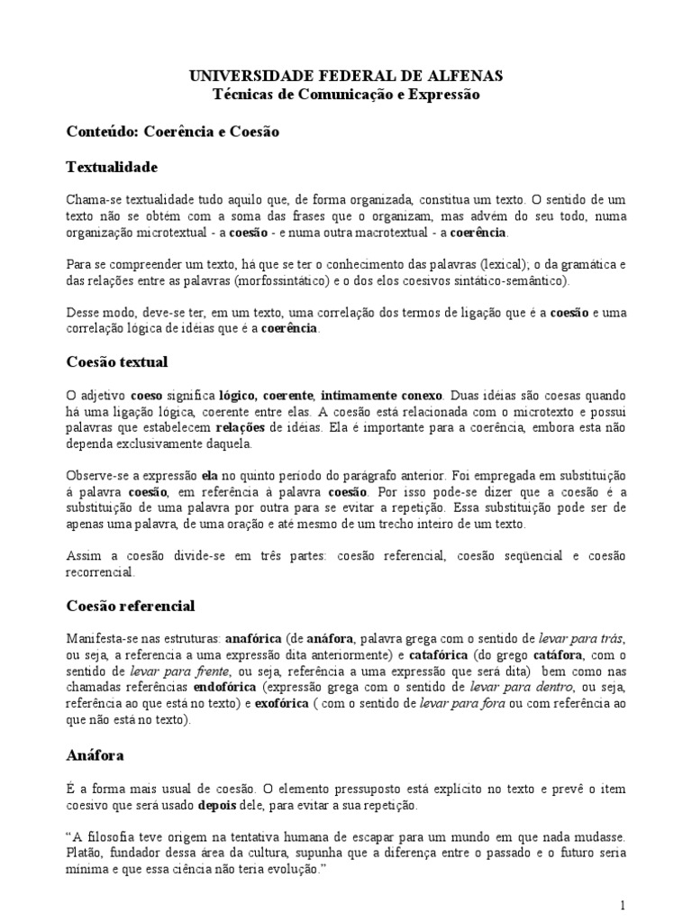 Conteúdo: Coerência e Coesão