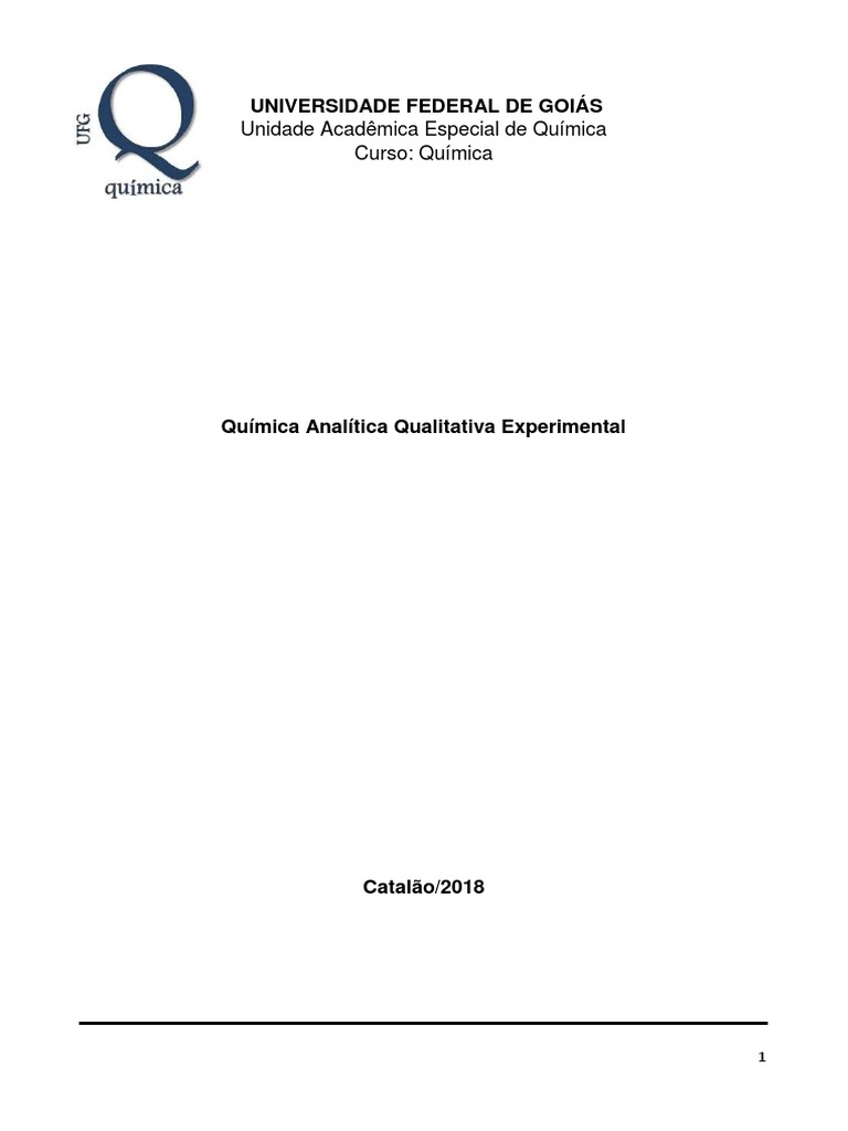 separação e identificação de cátions e ânions e introduzir técnicas de laboratório usadas