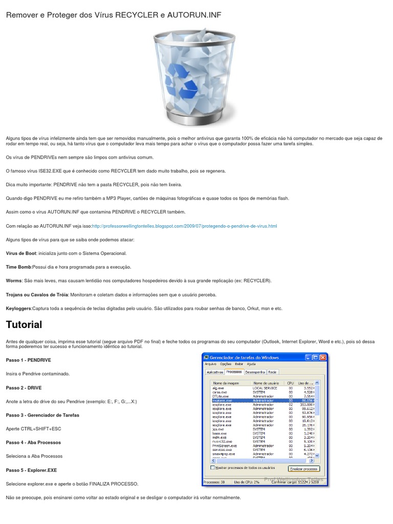 Assim como o vírus [Link] que contamina PENDRIVE o RECYCLER também.