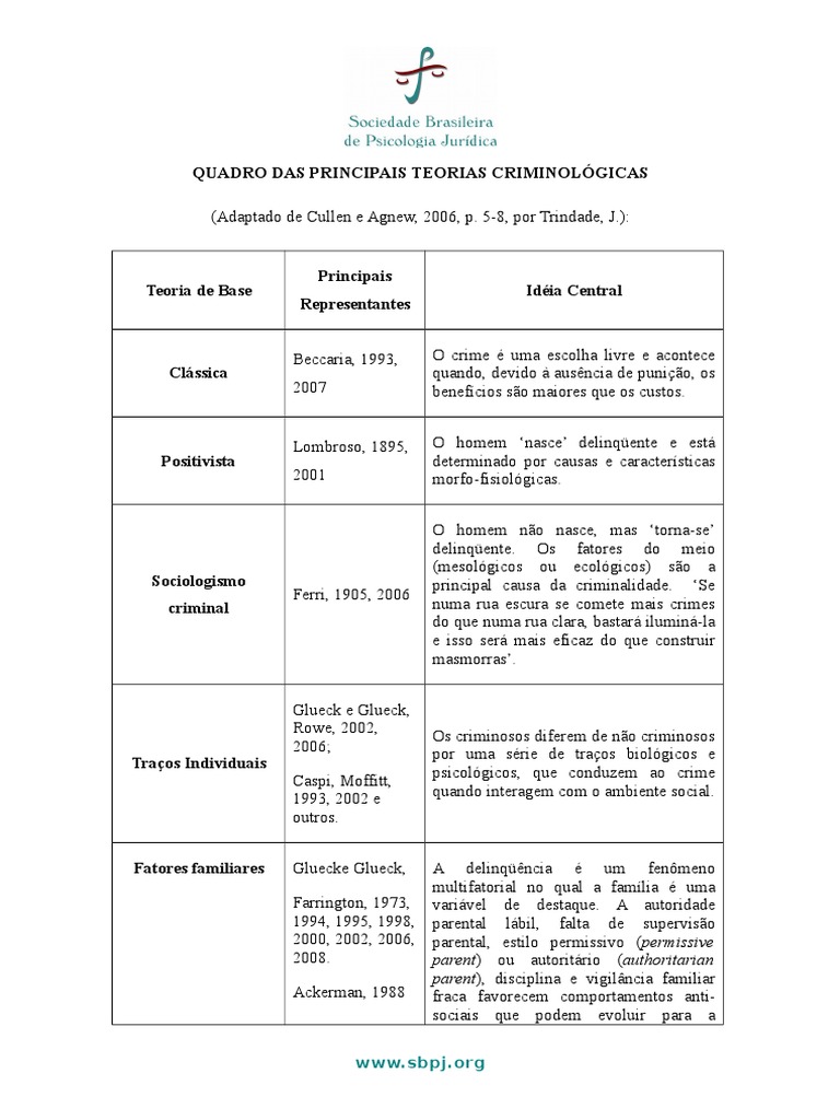 (Adaptado de Cullen e Agnew, 2006, p. 5-8, por Trindade, J.):