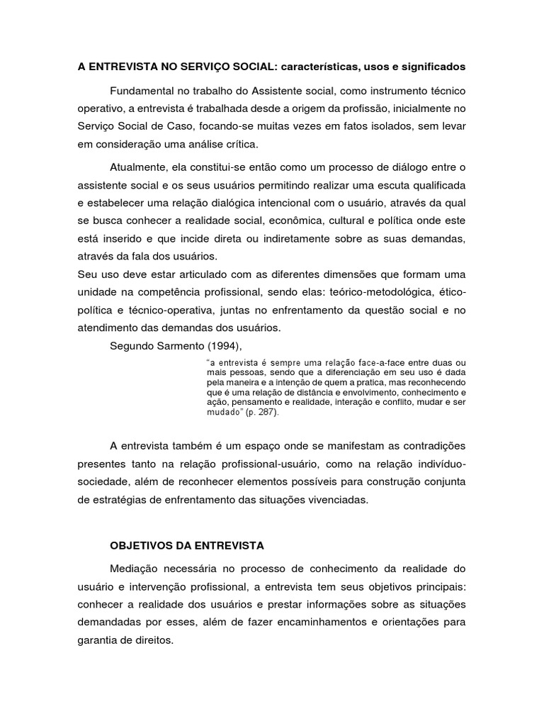 direitos sociais. Independentemente do local da entrevista, deve-se iniciar com