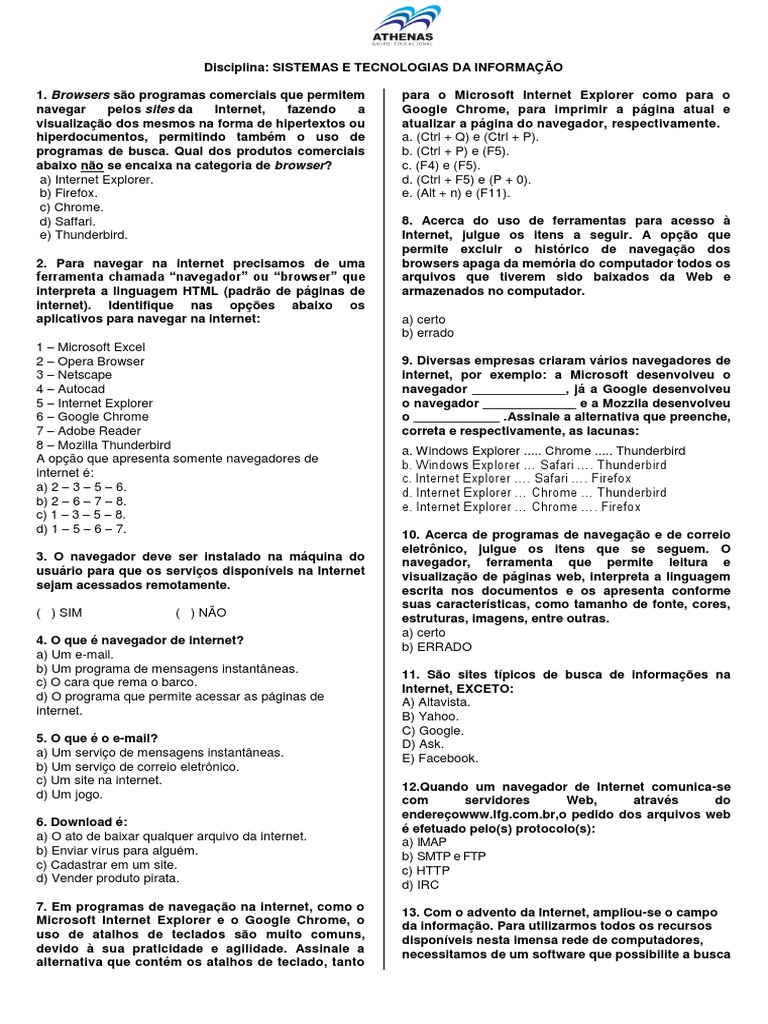 d) 1 – 5 – 6 – 7. 10. Acerca de programas de navegação e de correio