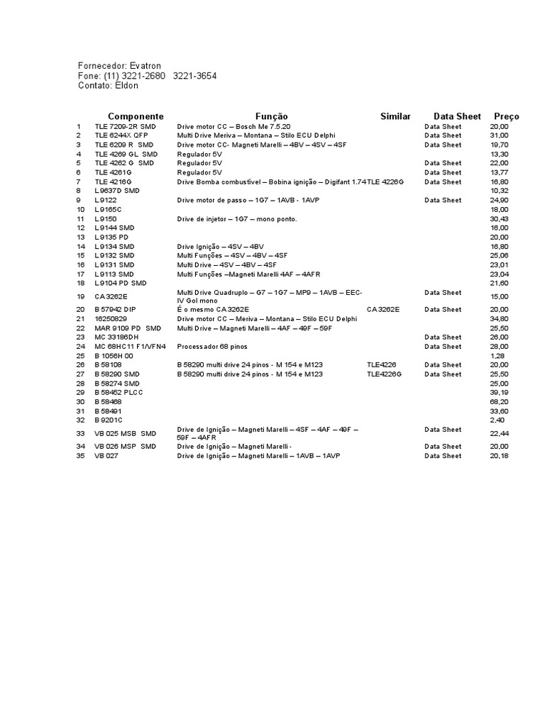 Componente Função Similar Data Sheet Preço