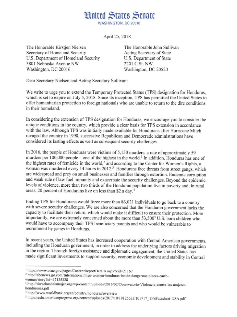 Bennet, Colleagues Encourage Trump Administration to Extend Temporary Protection Status for Honduras