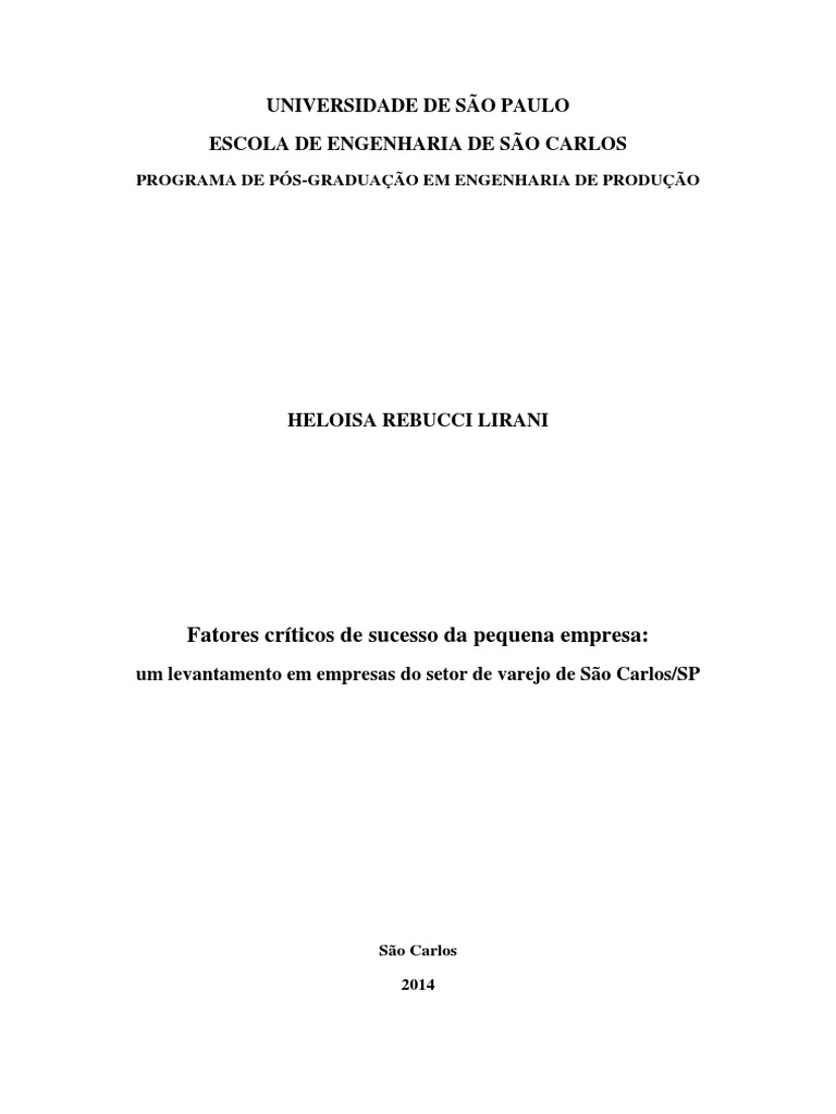 LIRANI, H. R. Critical sucess factors in small business: a survey in the retail sector