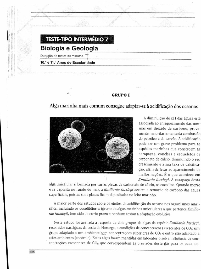 §tr 5. Explique de que modo a alteração do pH do habitat de Emiliania huxleyipoderá conduzir, a curto