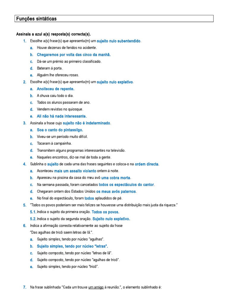 6. Indica a afirmação correcta relativamente ao sujeito da frase