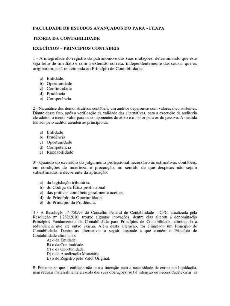 EXECÍCIOS – PRINCÍPIOS CONTÁBEIS