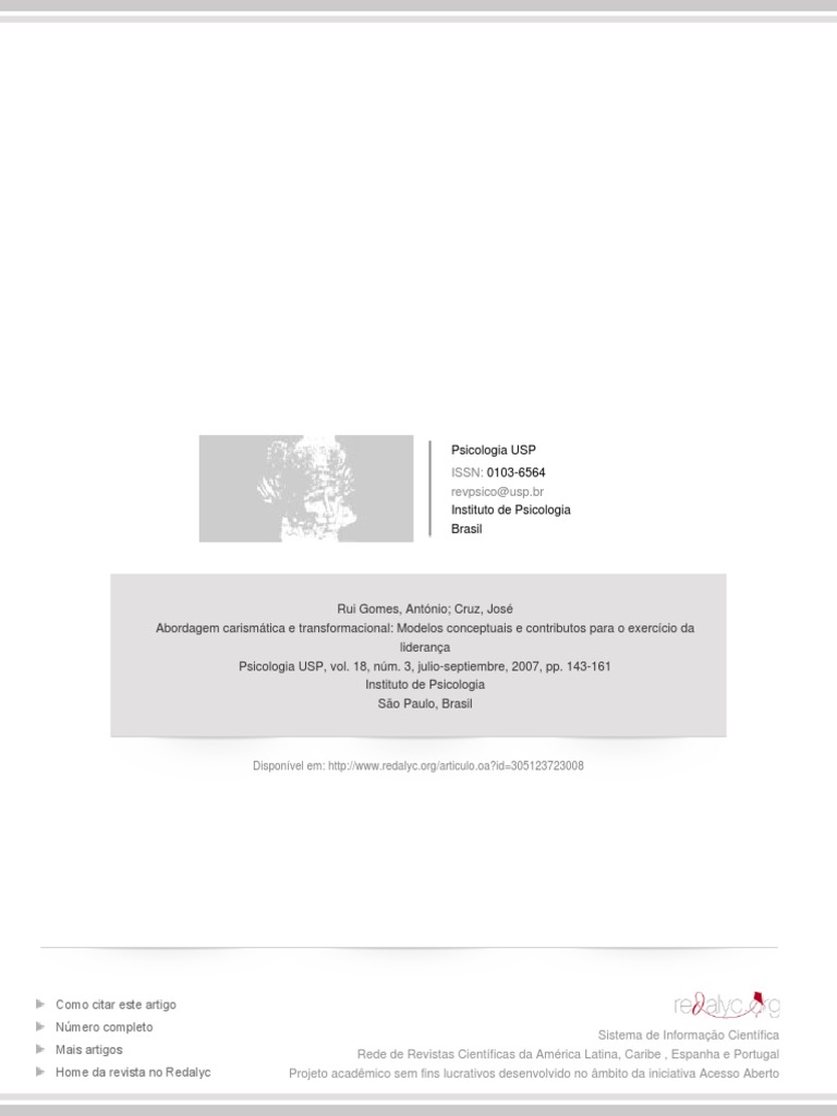 Home da revista no Redalyc Projeto acadêmico sem fins lucrativos desenvolvido no âmbito da iniciativa Acesso Aberto