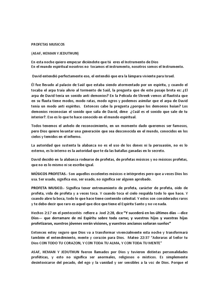 MÚSICOS PROFETAS.- Son aquellos excelentes músicos e intérpretes pero que a veces Dios los
