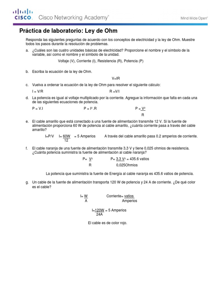 Responda las siguientes preguntas de acuerdo con los conceptos de electricidad y la ley de Ohm. Muestre