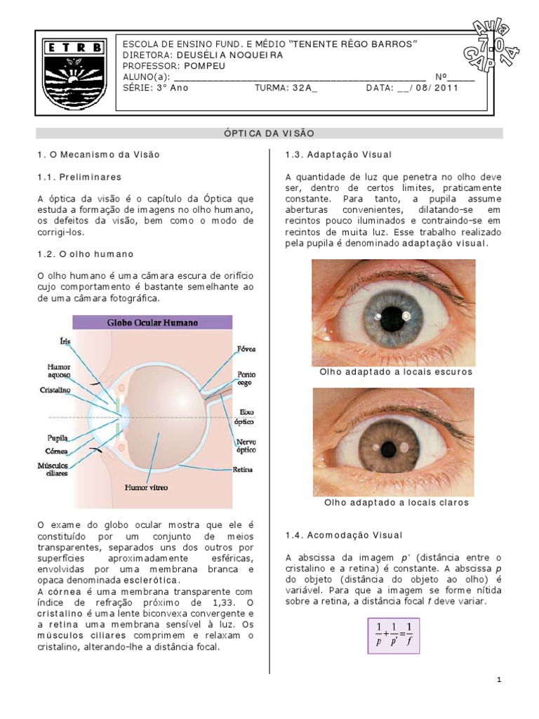 A óptica da visão é o capítulo da Óptica que constante. Para tanto, a pupila assume