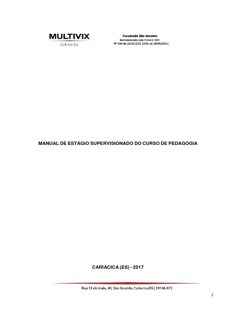 MANUAL DE ESTÁGIO SUPERVISIONADO DO CURSO DE PEDAGOGIA