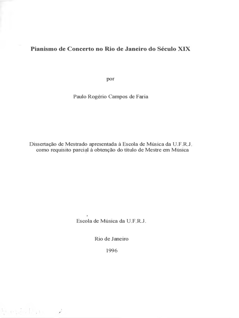 Pianismo de Conserto No Rio de Janeiro Do Século XIX