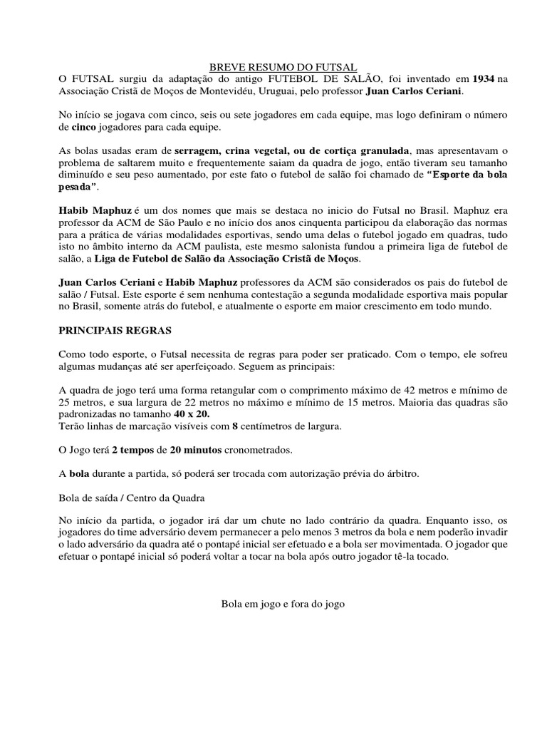 BREVE RESUMO DO FUTSAL