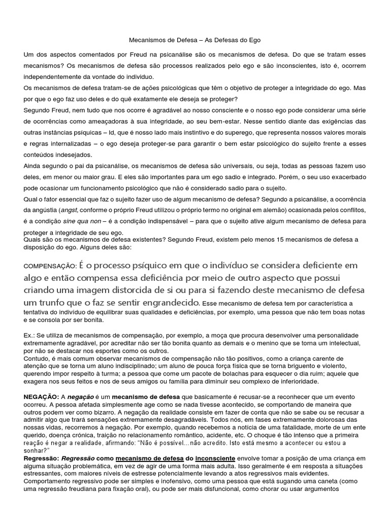 Um dos aspectos comentados por Freud na psicanálise são os mecanismos de defesa. Do que se tratam esses