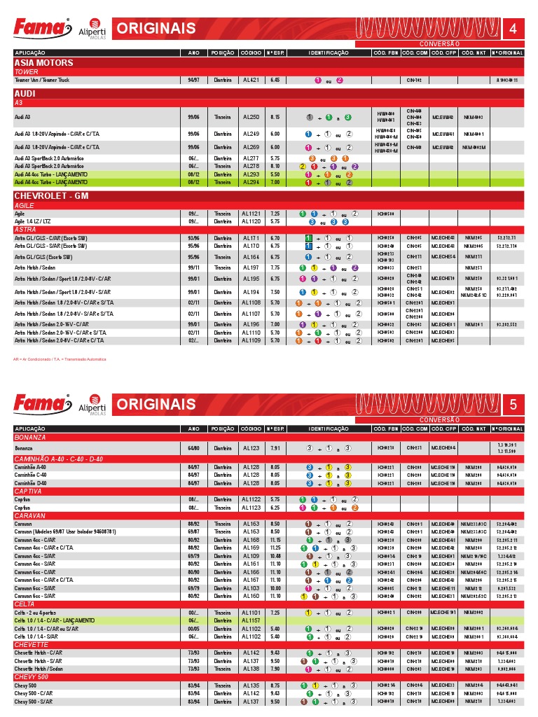 Tabelas de Conversão de Peças Automotivas