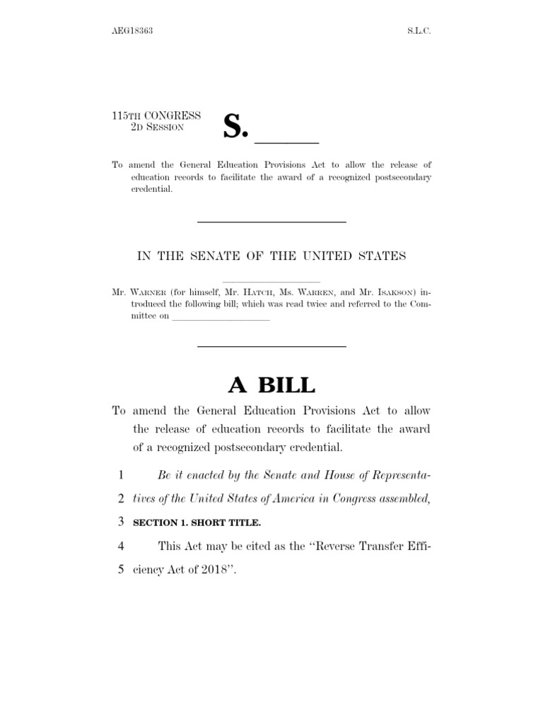 To amend the General Education Provisions Act to allow the release of education records to facilitate the award of a recognized postsecondary credential.