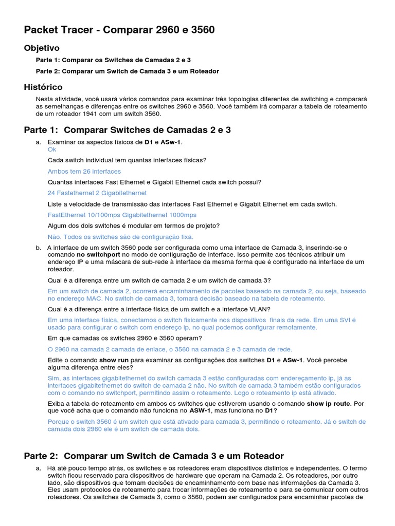 Parte 1: Comparar Switches de Camadas 2 e 3