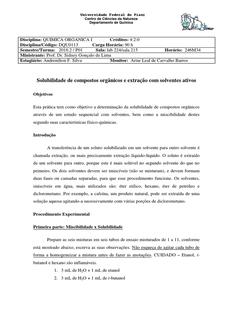 Esta prática tem como objetivo a determinação da solubilidade de compostos orgânicos
