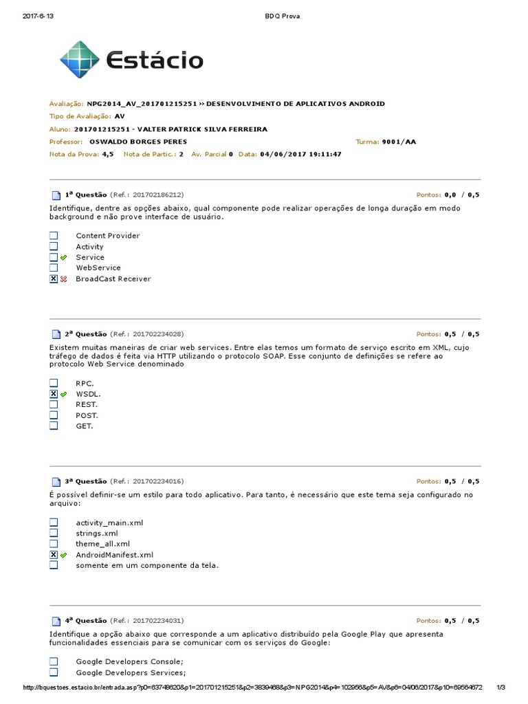 Nota da Prova: 4,5 Nota de Partic.: 2 Av. Parcial 0 Data: 04/06/2017 [Link]