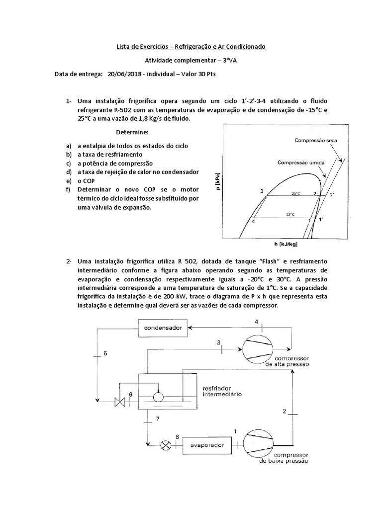 Lista de Exercícios – Refrigeração e Ar Condicionado