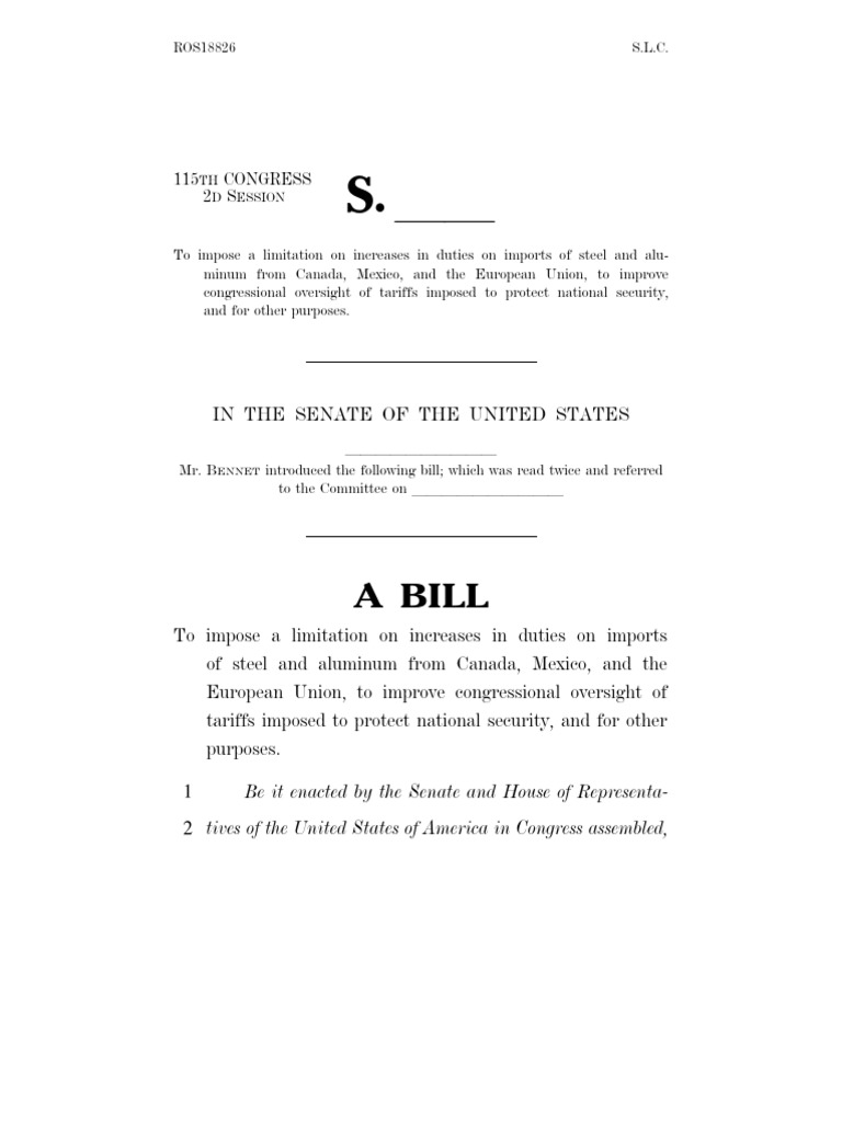 To impose a limitation on increases in duties on imports of steel and alu-minum from Canada, Mexico, and the European Union, to improve congressional oversight of tariffs imposed to protect national security, and for other purposes.