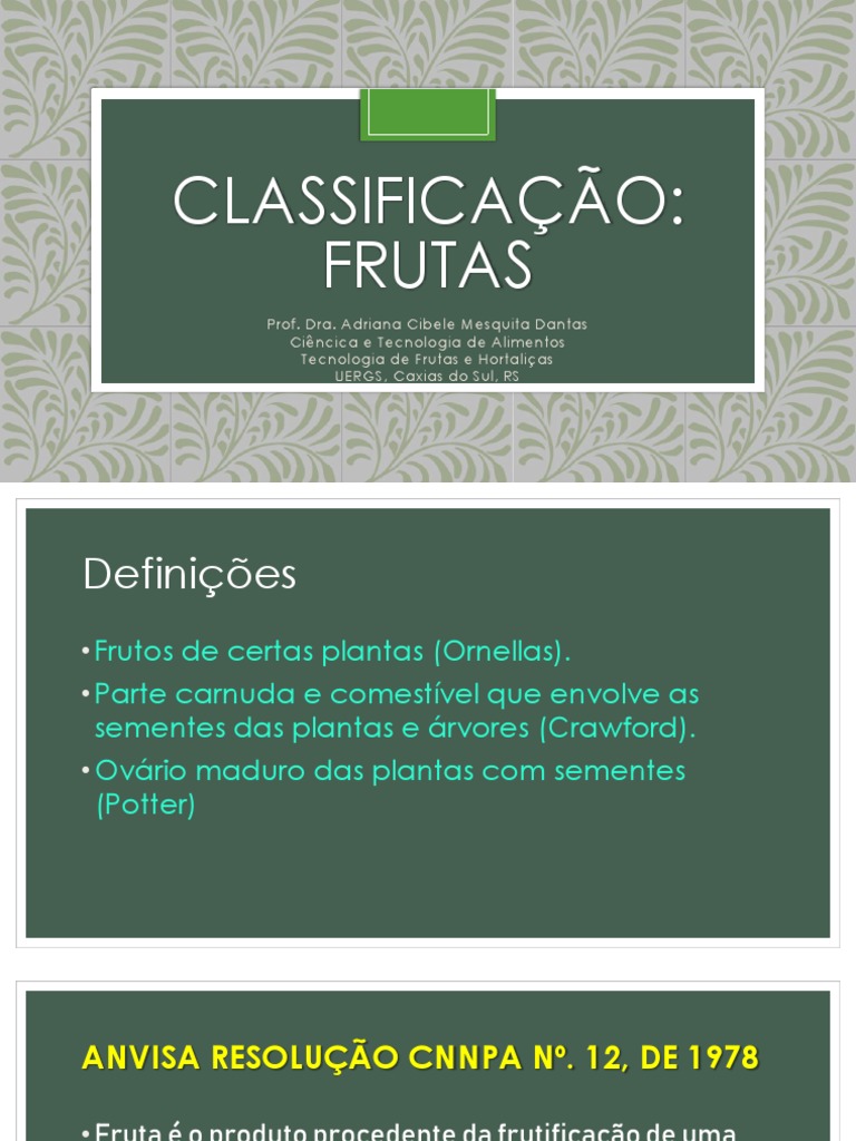 • As frutas próprias para o consumo devem ser procedentes de espécimens vegetais genuínos e: