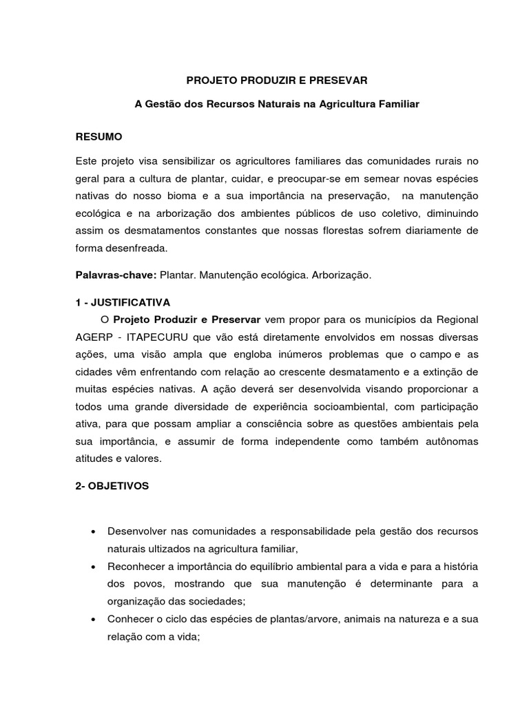 importância sobre o Projeto Produzir e Preservar, levando para seu meio social