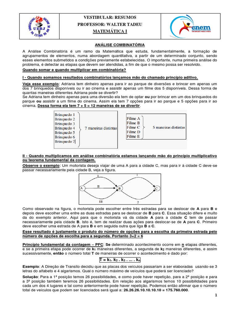 A Análise Combinatória é um ramo da Matemática que estuda, fundamentalmente, a formação de